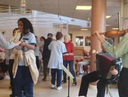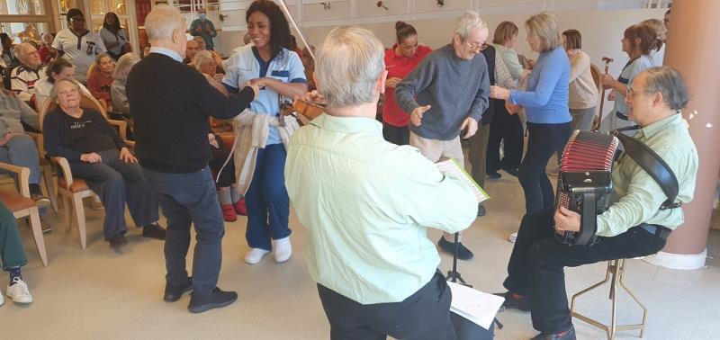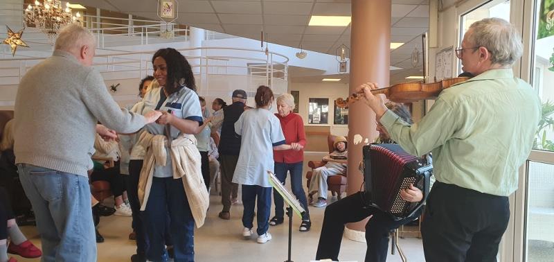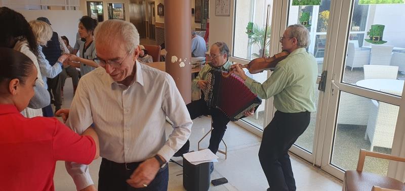 Un violon, un accordéon et voilà les résidents transportés par les mélodies celtiques tantôt douces et empruntes de mélancolie, tantôt entrainantes et pleines de gaité.